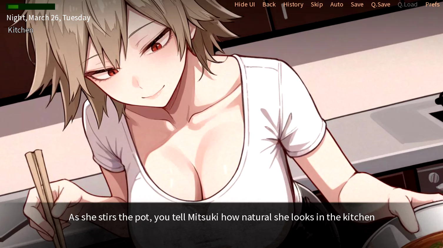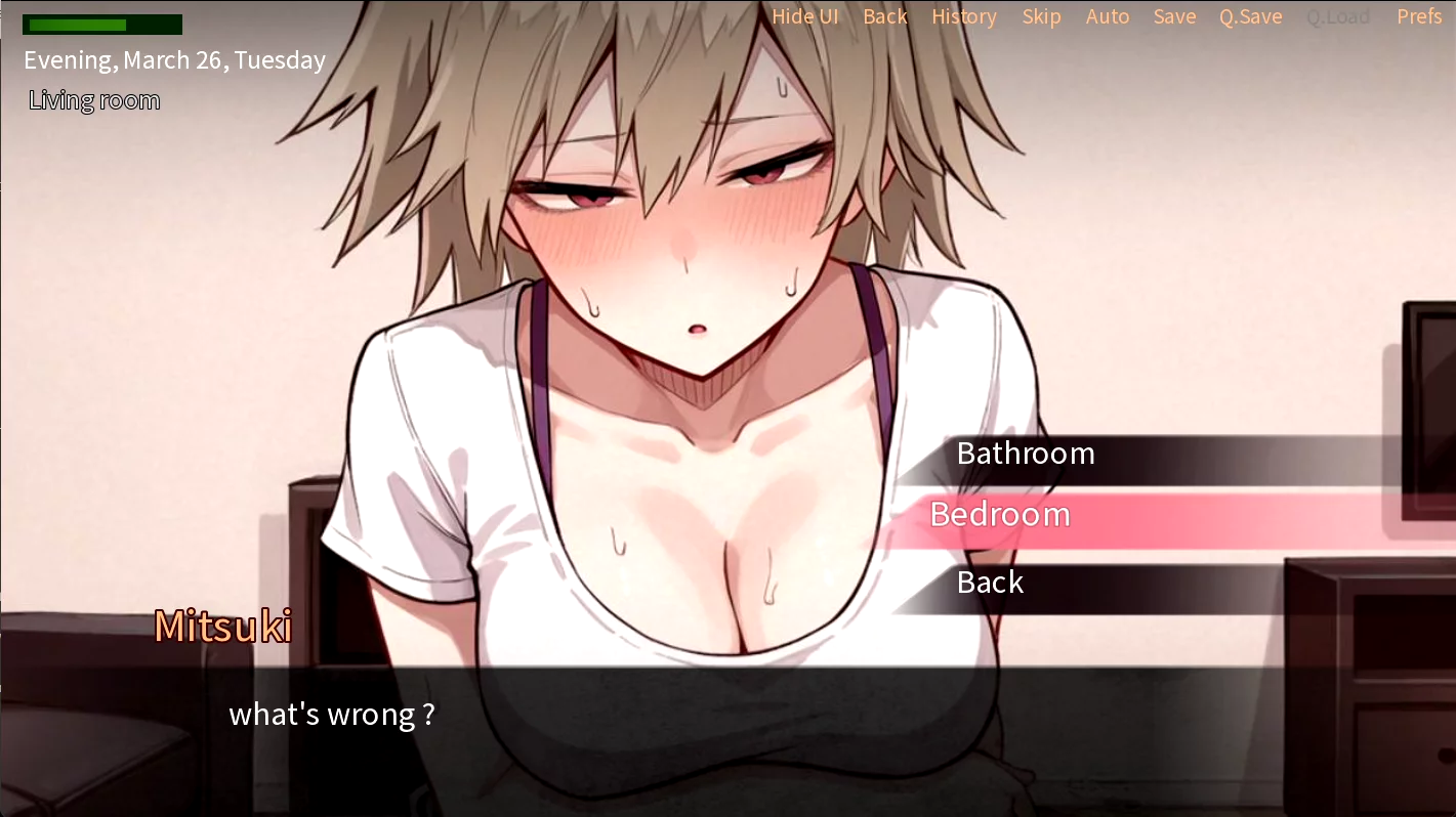 A Night With Mitsuki Bakugou Extra is a straightforward adult visual novel that does exactly what it says on the tin. You get one evening with Mitsuki at her place, and the game lets you decide how things play out between you two.
