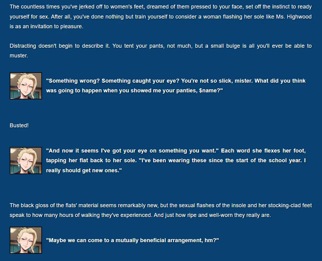 The story centers on corruption through subtle influence rather than direct confrontation. Multiple female characters work to guide the protagonist down a path of submission through carefully orchestrated scenarios. The writing focuses heavily on the psychological aspects of control, making each interaction feel deliberately calculated.