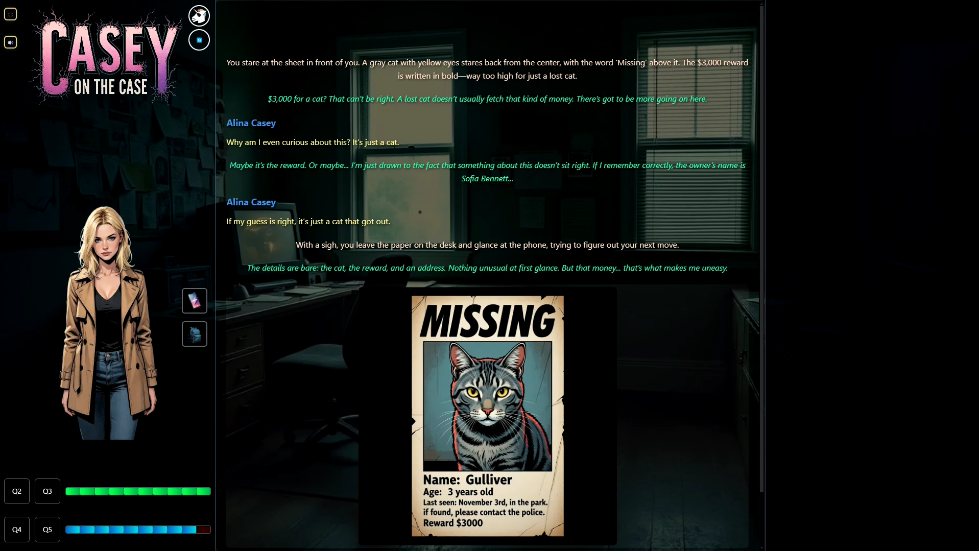 Casey On The Case puts you in the role of a private detective with serious baggage investigating some creepy disappearances. What starts as a standard missing persons case quickly turns into something way darker when Casey’s investigation leads to an abandoned psychiatric hospital.