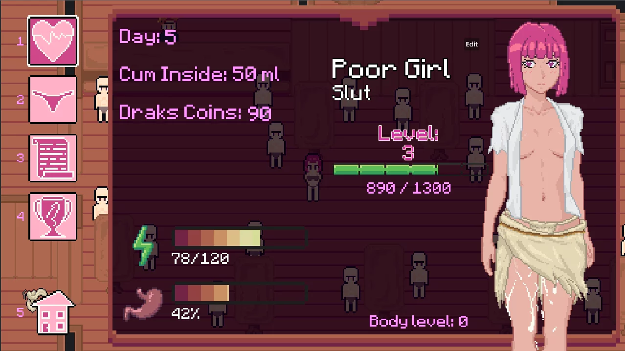 The gameplay revolves around collecting two main resources through adult encounters: Draks for money and Essence for upgrading your appearance. You spend these to level up your character and climb the social ladder. The progression system feels rewarding since every upgrade makes you more powerful and opens up new opportunities.