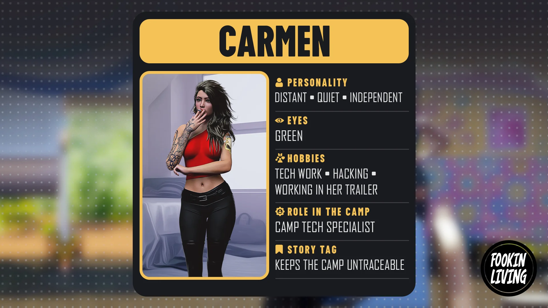 Fookin Living is an AVN with a rich story and plenty of interactivity, featuring minigames, including a turn-based one, as well as dates, hidden collectibles, and much more! Follow the story of Tony, part of a group of criminals traveling around America in RVs. Enjoy a breathtaking story filled with the most beautiful women you’ve ever seen. After one girl disappears from the camp, it sets off a chain of events that will drag the gang into a series of adventures, including fights, parties, alcohol, and sex, lots of sex. Build relationships with the characters and make sure the gang runs as smoothly as possible. Decide whether you want to play as a Badass or a Hero, which will affect the missions and scenarios available to you. Trailer :