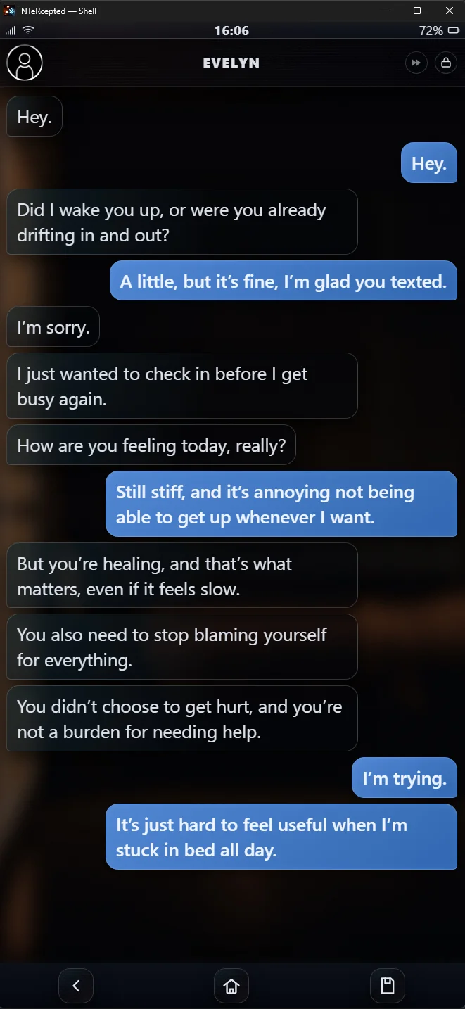 iNTeRcepted offers a fresh take on interactive storytelling by turning your entire gaming experience into a smartphone simulation. Rather than clicking through traditional dialogue boxes, you’ll navigate through realistic text messages, social media feeds, and app notifications that feel surprisingly authentic. The narrative unfolds naturally as you swipe, tap, and respond just like you would on your actual phone.