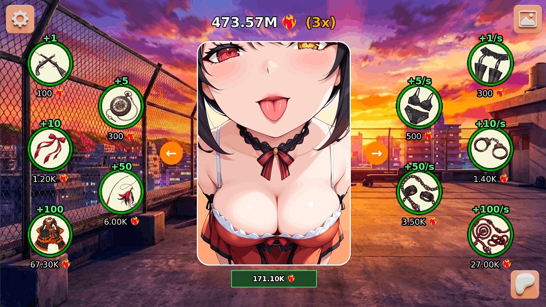 Kurumi Clicker: Nightmare Temptation traps you in a dangerously addictive loop with the most volatile Spirit in existence. You aren’t simply tapping a screen; you are actively feeding the insatiable hunger of Kurumi Tokisaki, gathering Time resources to fuel her powers while navigating her teasing dialogue. The game forces you to constantly upgrade your output to keep up with the demands of Zafkiel, ensuring that every click brings you closer to unlocking the full extent of her chaotic affection.