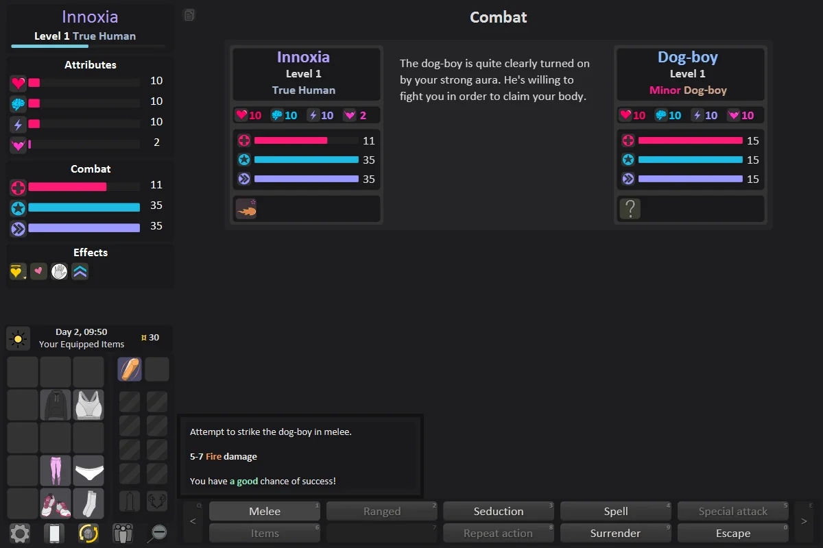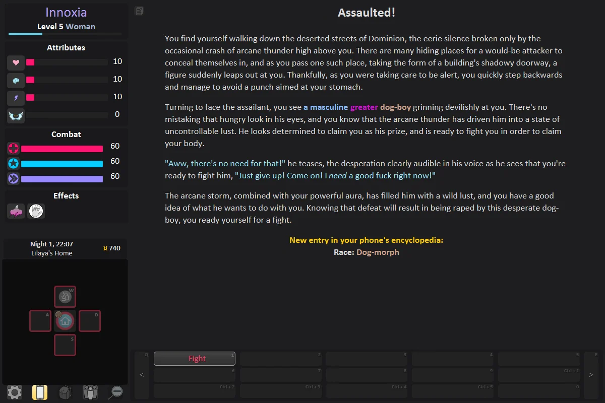 Lilith's Throne is a text-based erotic RPG, being developed by me, Innoxia. It's been made from scratch in Java, and uses JavaFX for the UI. Basically, the game is about you being transported into an alternate dimension, and the main story is about trying to find a way to return home. Alongside humans and demons, there are currently 4 anthropomorphic races in the game, with plans for many more to be added in the future! Some main features include: – RPG-style levelling system. – Turn-based combat. – Turn-based sex scenes. – RPG-style item management. – Transformations. – Exploration on a randomly generated map.