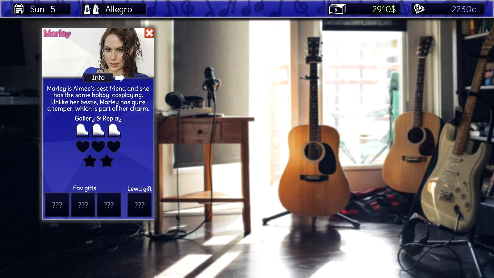 The game gives you multiple ways to win over each woman. You can chat with them, buy presents, or play mini games that tie into the musical theme. Each character has their own progression path, so there’s actually some depth to the relationships you build.
