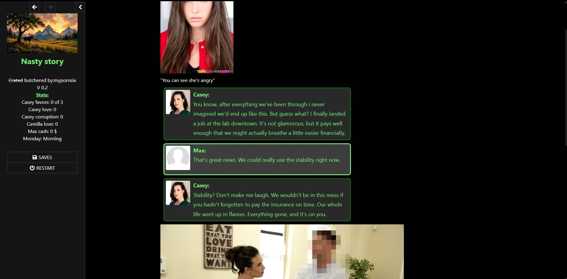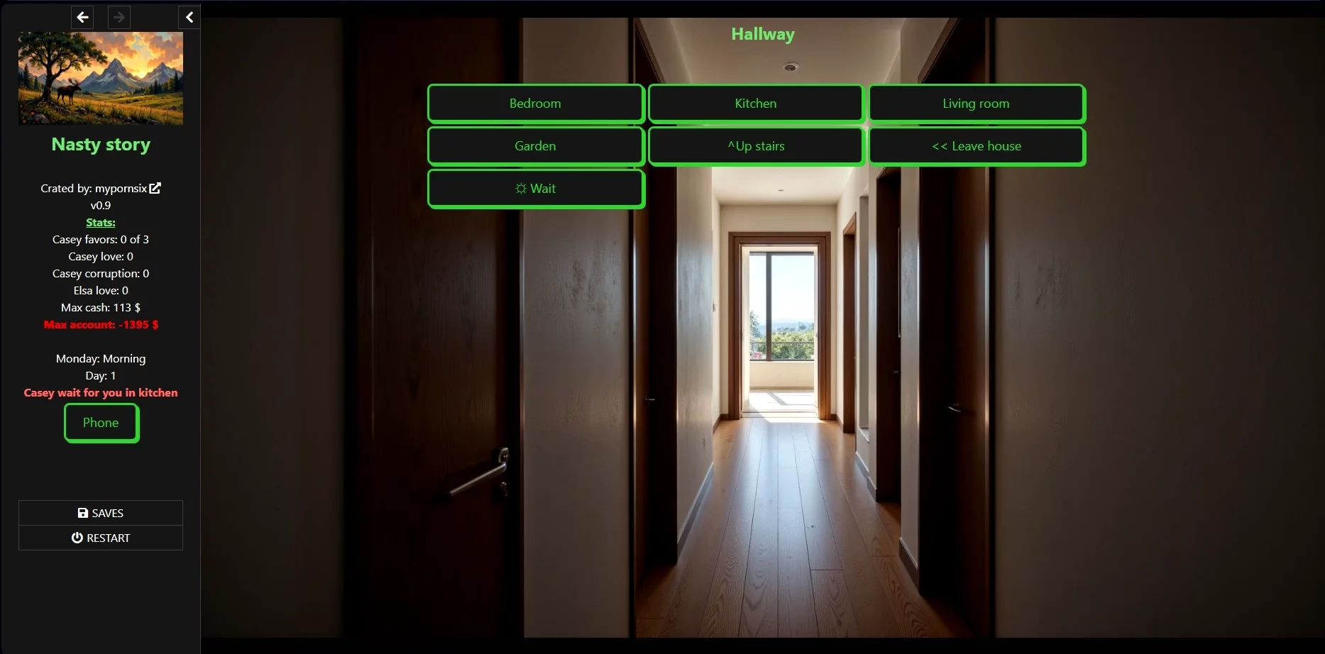 Nasty Story puts you in a house-based setting with real porn scenes featuring Casey Calvert as your wife. The developer drew inspiration from “To the Fullest” but keeps the action focused around domestic scenarios.