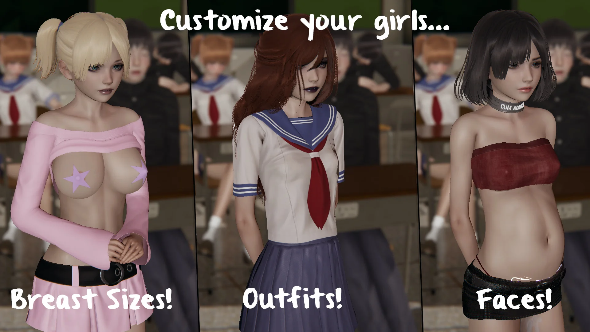 Public Sex Life H offers players a choice between two distinct gameplay paths that fundamentally change how you approach relationships and character development. The trainer-style mechanics let you customize nearly everything about your experience, from your own character’s appearance to the girls you encounter. The level of personalization extends to outfits, physical features, and even carries these changes into animated scenes.