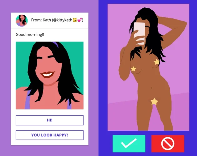 Kath has an app, she wants you to help her moderate the lewd images, while flirting with you & sharing sexy stories.