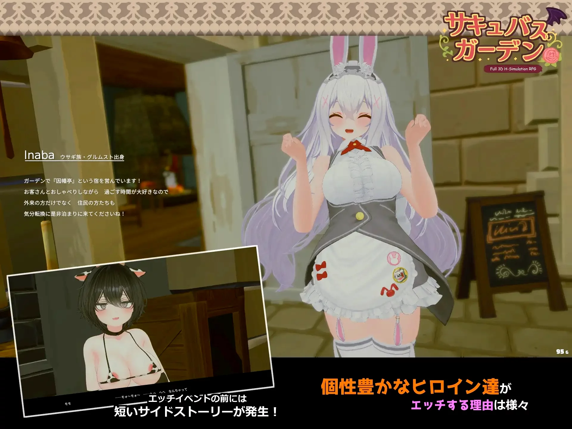 The game takes place in Succubus Garden, a weird coexistence city where succubi try to live normal lives alongside other species. Think of it as supernatural rehabilitation mixed with daily life simulation. Saki has to figure out how to pay off her debt while dealing with her constant cravings and the town’s strict rules.