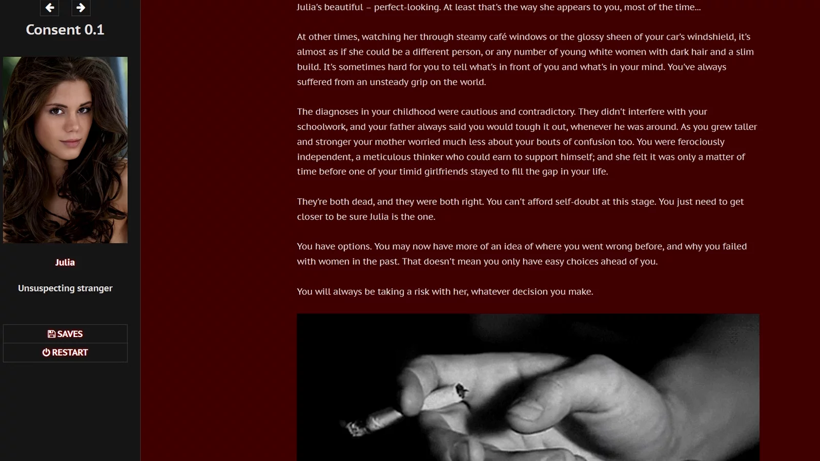 With Consent puts you in the shoes of someone who believes they’ve found their perfect wife, even if she doesn’t see it that way yet. This psychological thriller from TheGrimRomantic explores some seriously dark territory around obsession and manipulation.
